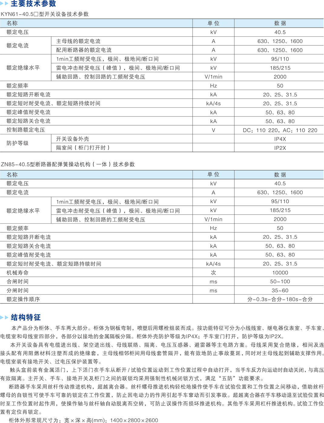 > KYN61-40.5 鎧裝移開式交流金屬封閉開關(guān)設(shè)備