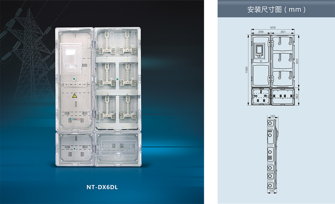 電表箱生產(chǎn)廠家-浙江南騰電氣有限公司研發(fā)的NT系列透明塑料電表箱,采用進口聚碳酸酯(PC)和阻燃ABS工程塑料制成。具有抗沖擊、抗老化、耐腐蝕、透明度高、抗紫外線、安裝方便等優(yōu)點,并且具有用電安全保護,用戶分離控制,數(shù)據(jù)采集, 防盜電等功能。產(chǎn)品適合安裝電子式、機械式、智能IC卡預(yù)付式、智能多費率式電表。南騰NT系列透明塑料電表箱自推出市場以來,憑借其完美的設(shè)計理念,在電表箱行業(yè)遙遙領(lǐng)先。