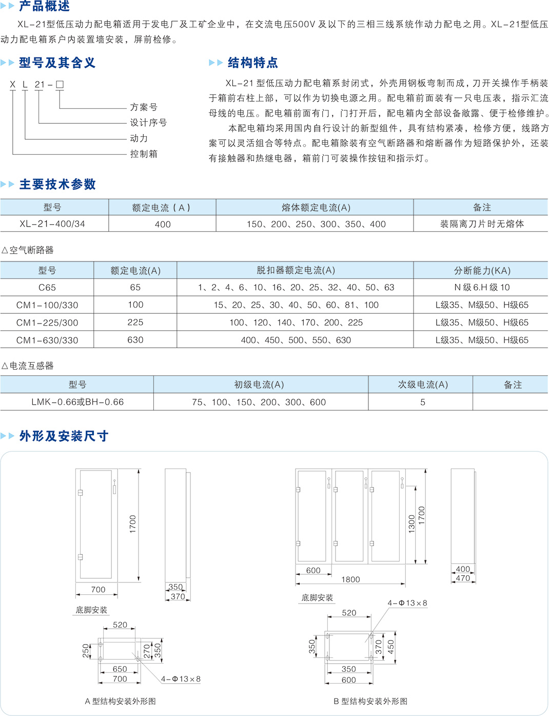 XL-21型低壓動(dòng)力配電柜